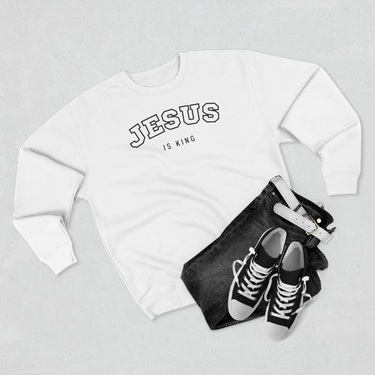 Jesus is King – (Varsity-style font) Men's Premium Sweatshirt