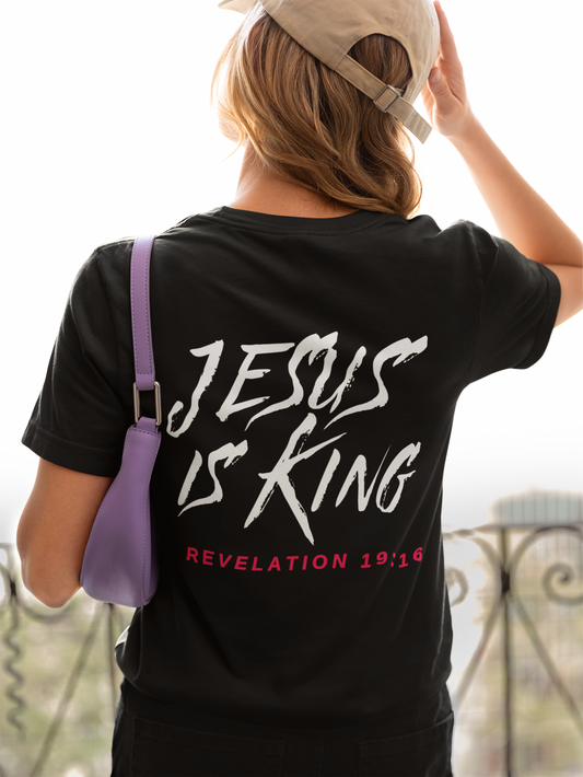 Jesus is King(Graffiti style text on back) - Womens Christian T-Shirt