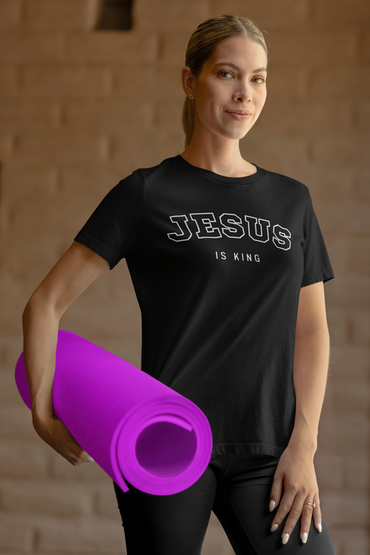 JESUS IS KING – Varsity Style Womens Christian T-Shirt